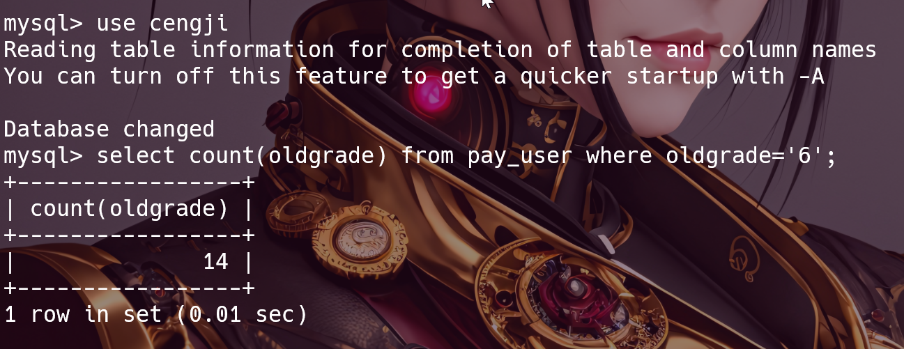 select count(oldgrade) from pay_user where oldgrade='6';